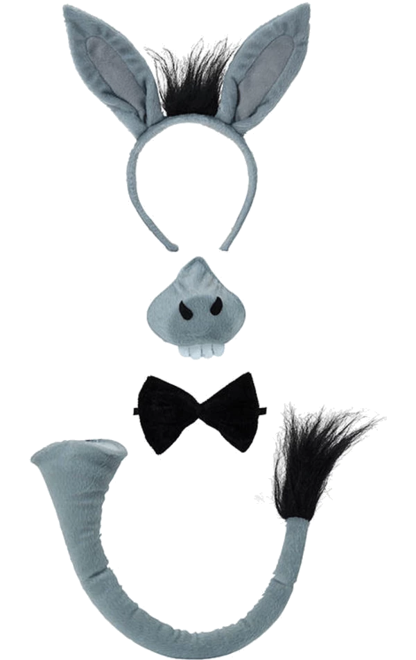 They can be a donkey in an instant with the Adult Donkey Sound Kit! The kit contains a grey headband, nose with donkey sound effect, bow tie and tail.