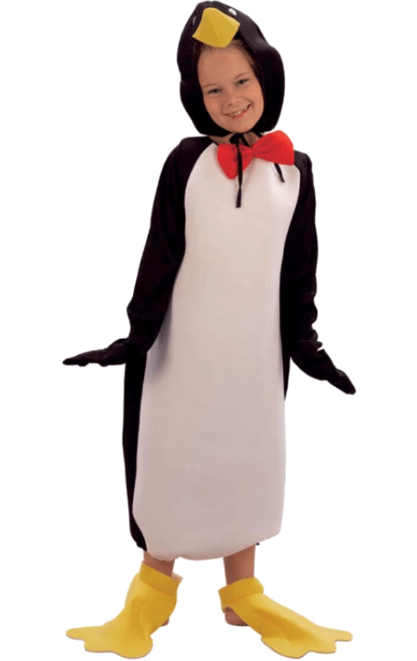 Dance around with happy feet in the Child Comical Penguin Costume! The costume includes a black and white bodysuit, penguin shaped headpiece and yellow shoe covers