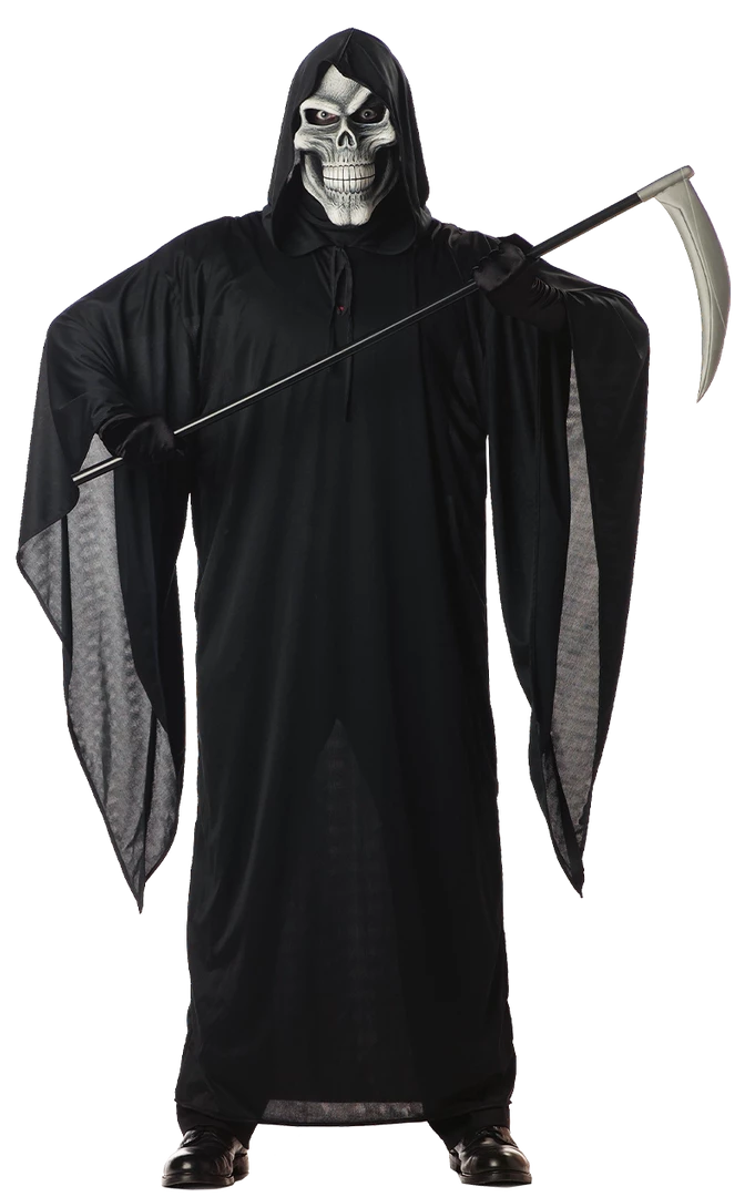 Scare everyone to death this Halloween with the Adult Grim Reaper Costume! The costume includes a long black robe with dramatic sleeves and hood plus skull design mask.
