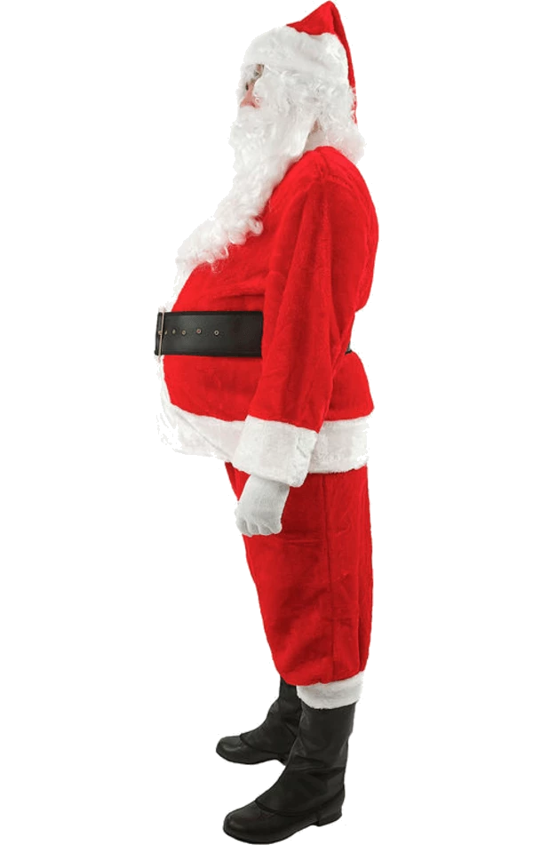 Make children believe in Santa with the Adult Popular Rental Santa Suit! This suit includes a pair of trousers, coat, hat, belt, boot tops and gloves.