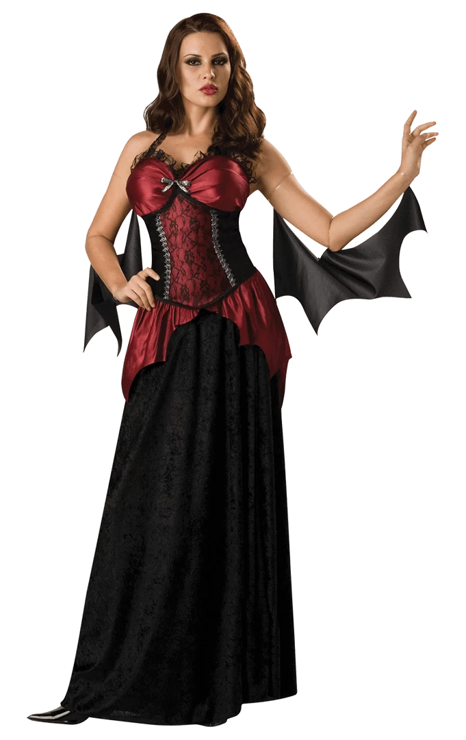 Enchant your victims in our waist cinching Vampira ladies costume this Halloween. Product includes dress and wings only.