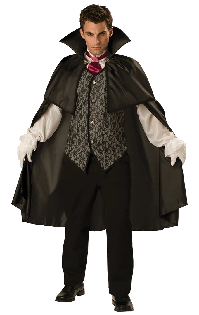 Suck the life out of the town in our detailed Midnight Vampire costume. Product includes cape, sleeves, waistcoat and tie.