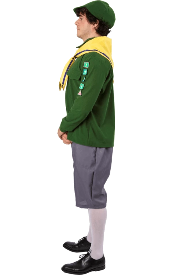 Learn new party skills in the Adult Boy Scout Costume! The costume includes green top, grey shorts, hat, yellow scarf and badges.