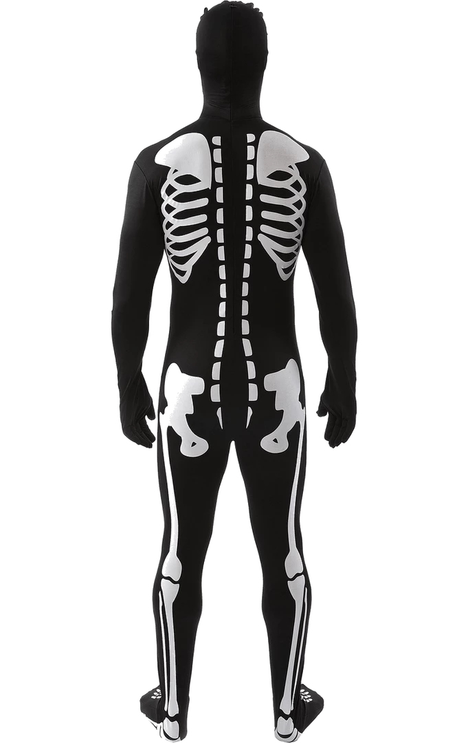 Show off your bones this Halloween with the Adult Second Skin Skeleton Suit! This second skin suit is black and comes with a hood and white skeleton print.