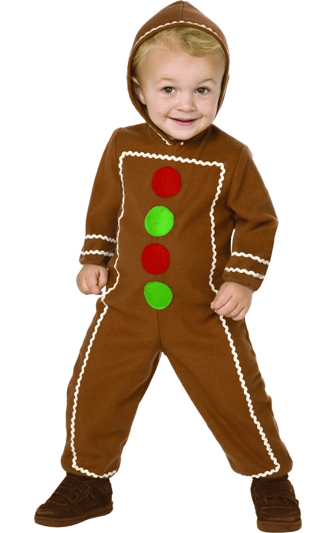 Run away from the little old lady with the Child Mr Gingerbread Man Costume! This costume includes a jbrown jumpsuit with hood.