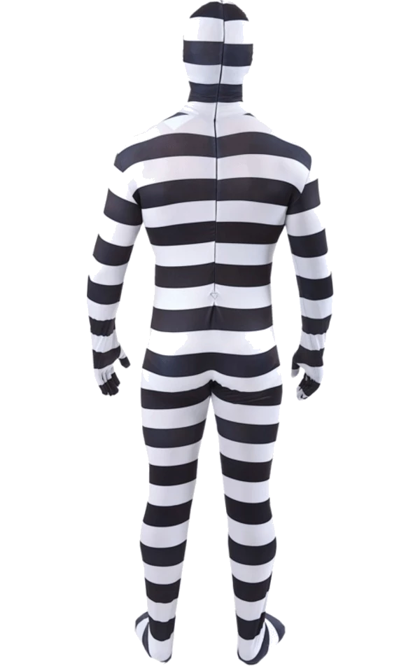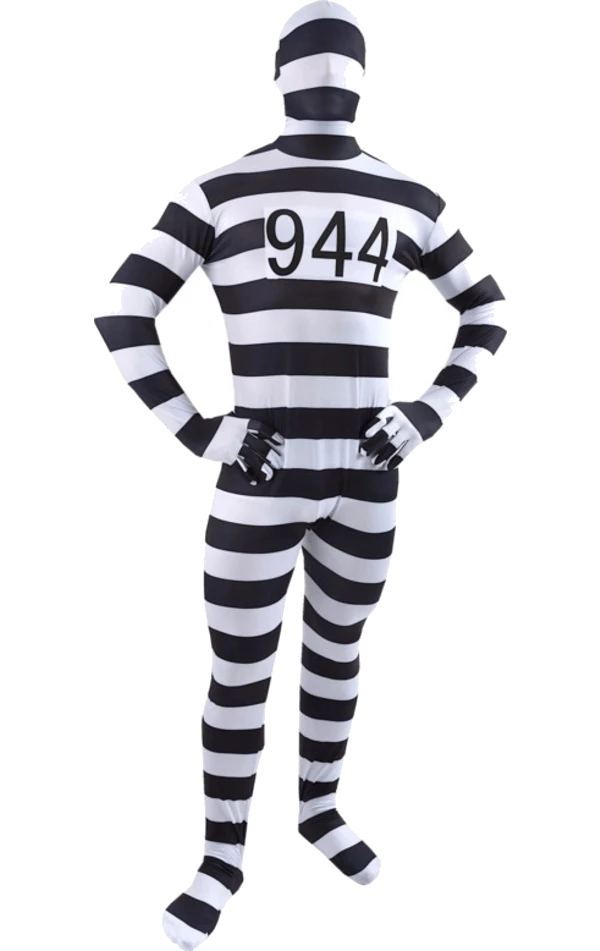 This costume is made from a stretchy material that will cover your entire body and face with black and white stripes. There’s a prisoner number printed onto the chest of the skin suit.