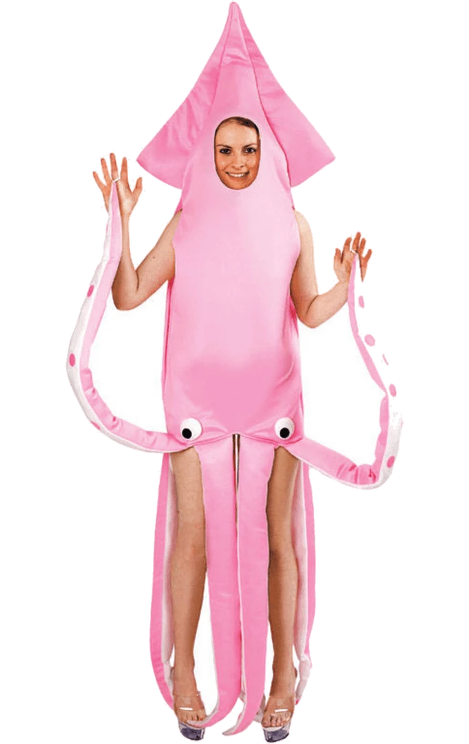 Swim around in the Adult Pink Squid Costume! The costume includes a pink squid shaped tunic with tentacles, eyes and hole for face.