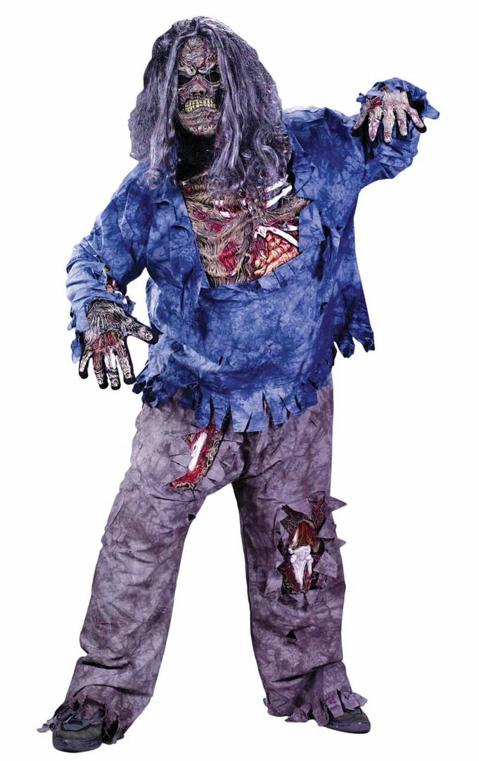 The Adult Complete Zombie Costume is so disgusting it will make your skin crawl! The costume includes ripped trousers with exposed flesh, shirt with exposed skeleton and full face mask.