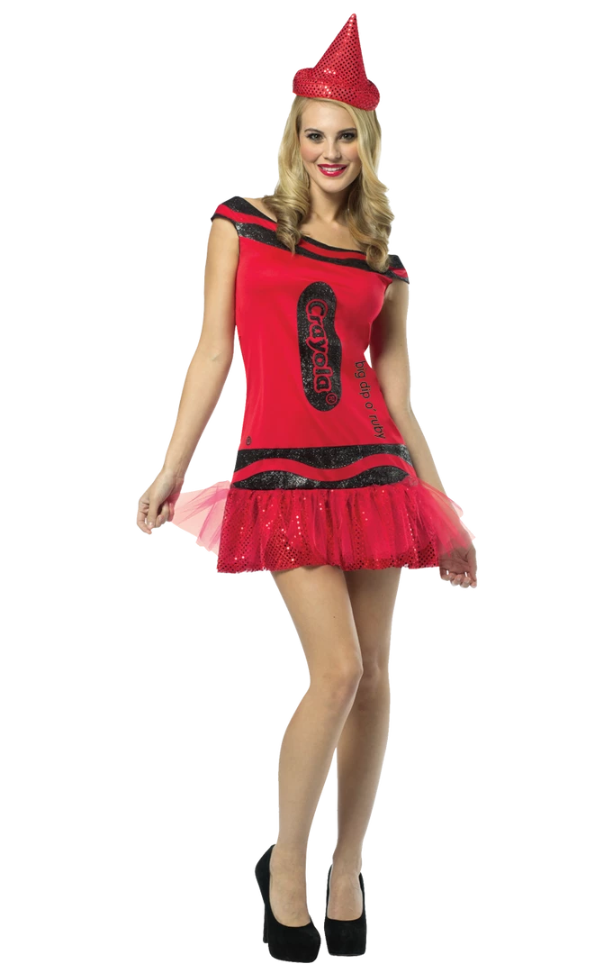 Colour yourself happy in this Adult Crayola Red Glitter Tutu Dress Costume. Perfect for group fancy dress and hen do costumes.