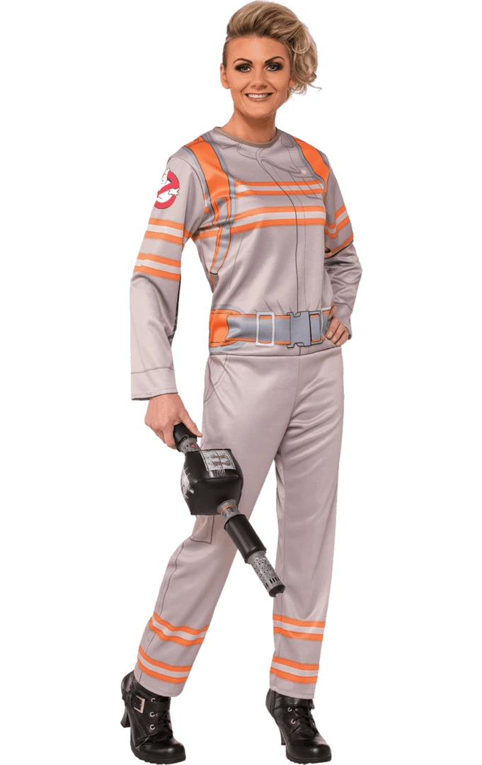 Includes jumpsuit with printed backpack & inflatable proton wand.