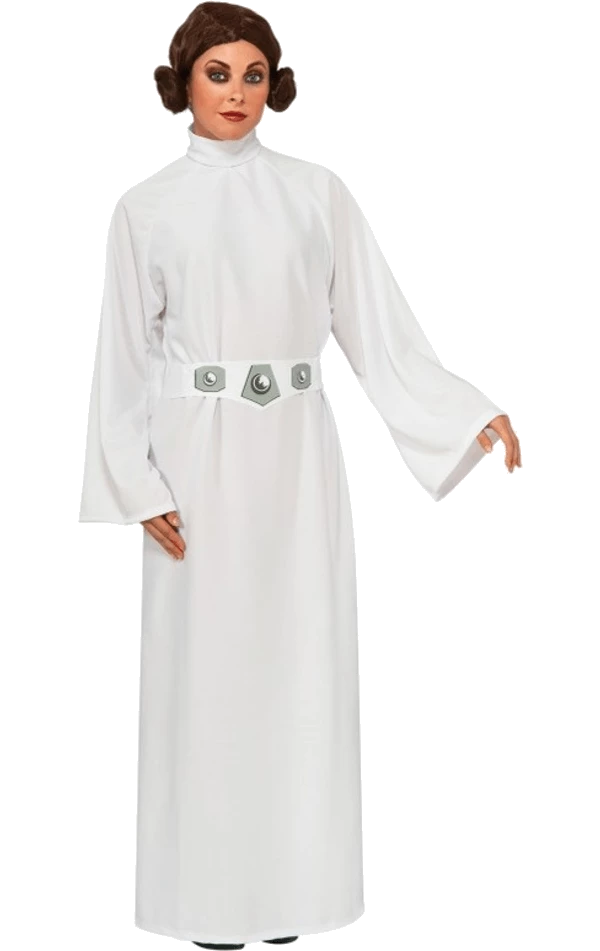 Become a sci fi Star Wars hero in the Adult Princess Leia Costume! The costume includes full length dress, a character wig and a white belt with silver design.