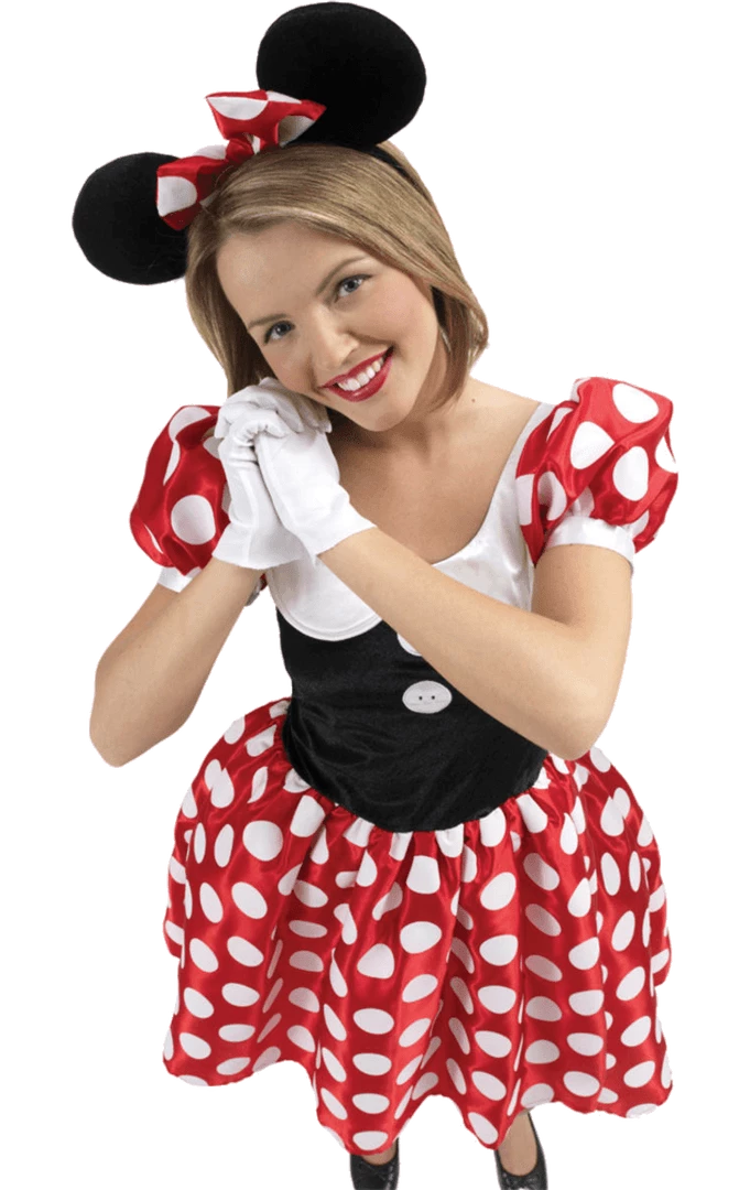 Be like the magical Disney cartoon with the licensed Adult Minnie Mouse Costume! The costume includes a red black and white polka dot dress with puff sleeves, gloves and headband.
