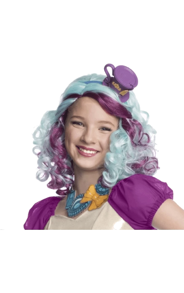 Get the look with the Child Ever After High Madeline Hatter Wig! The wig is blue, purple and curly,