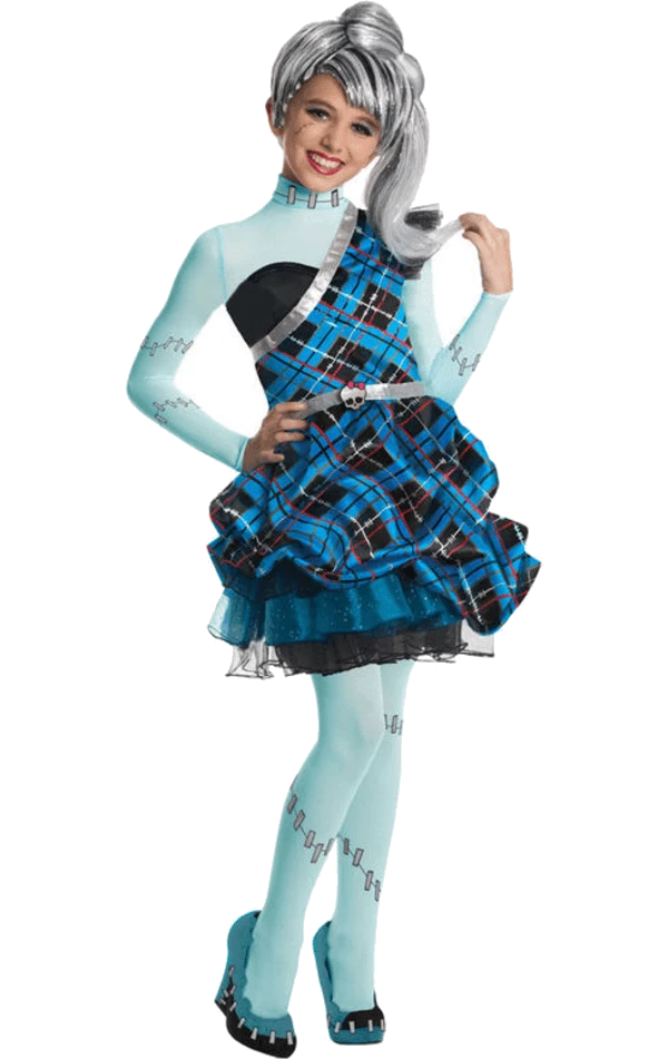 Celebrate your birthday in the Child Monster High Frankie Stein Sweet 1600 Costume! This costume includes a dress, wig and tights.