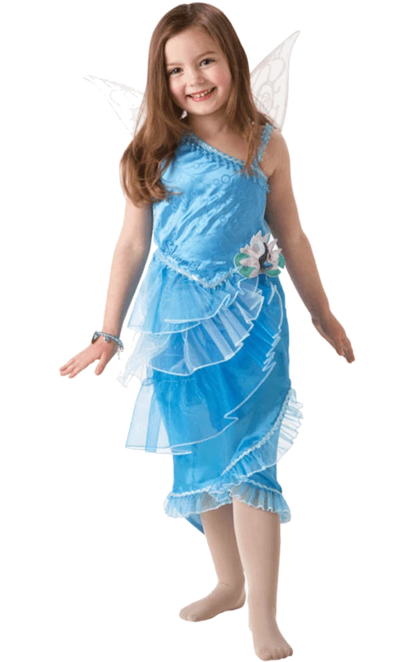 Become the blue fairy in the licensed Child Disney Silver Mist Fairy Costume! This costume includes a layered blue dress and wings.