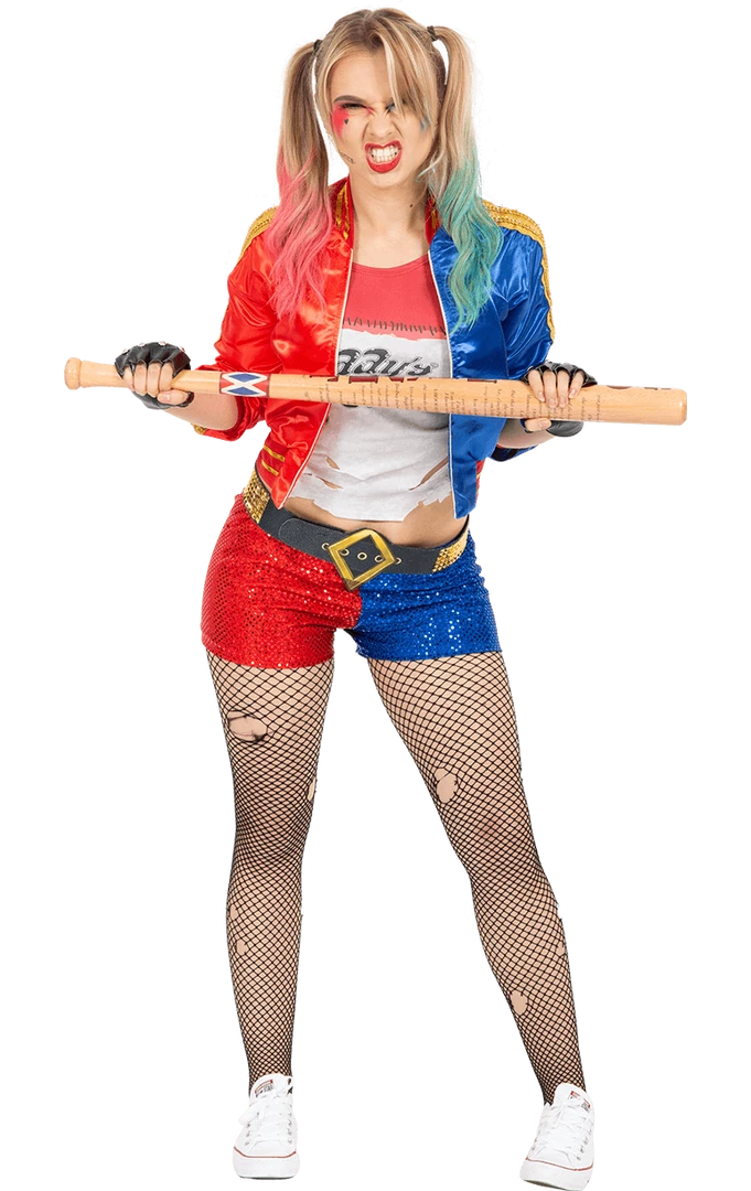 This is definitely a top choice if you are dressing up for Halloween, Comic Con, hen parties, superhero or film fancy dress. Complete the outfit with a Harley Quinn Bat to look like a real badass.