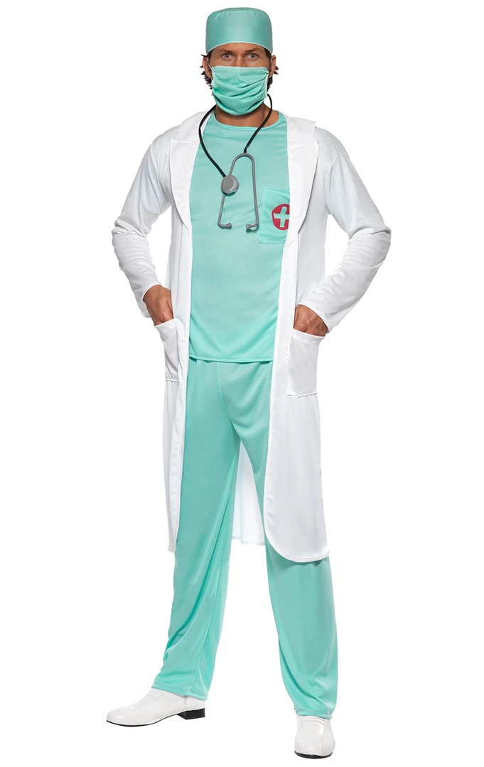 Measure vital signs in the Adult Classic Doctor Costume! This costume comes with green trousers, matching top, hat, mask, white lab coat and clear name tag.