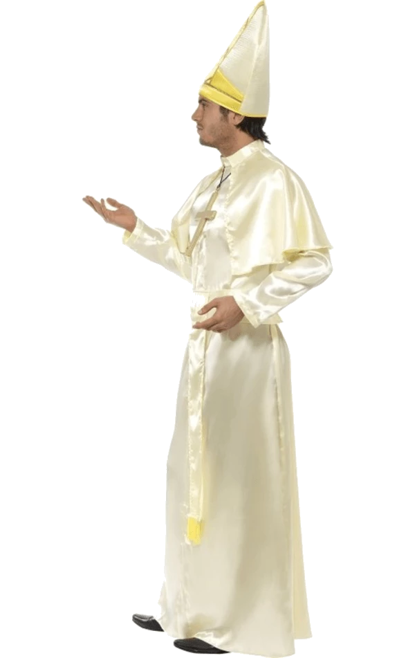 Forgive everyone’s sins in the Adult Pope Holy Costume! This costume includes a long cream coloured robe, sash, hat, necklace with cross and cape.