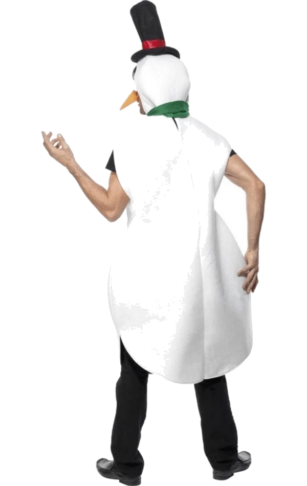Look festive and fun this Christmas in the Adult Snowman Costume! The costume includes a white bodysuit with printed buttons, a green scarf, a top hat and a carrot nose.
