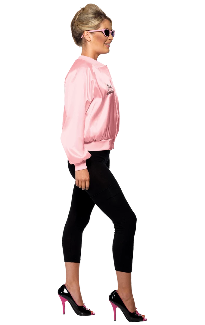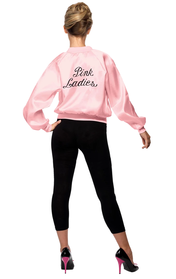 The iconic Pink Ladies Jacket, from the movie Grease, is a baby-pink bomber-style jacket with satin embroidery and “Pink Ladies” decorated on the back.
