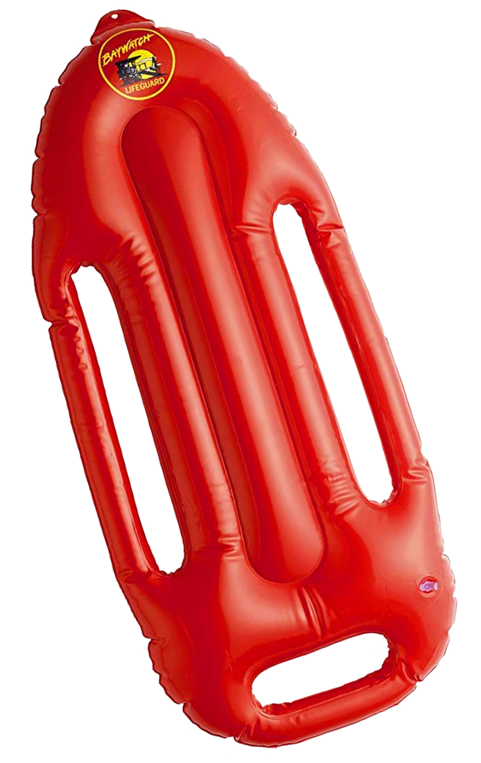 Licensed Baywatch inflatable life float with logo on the front.