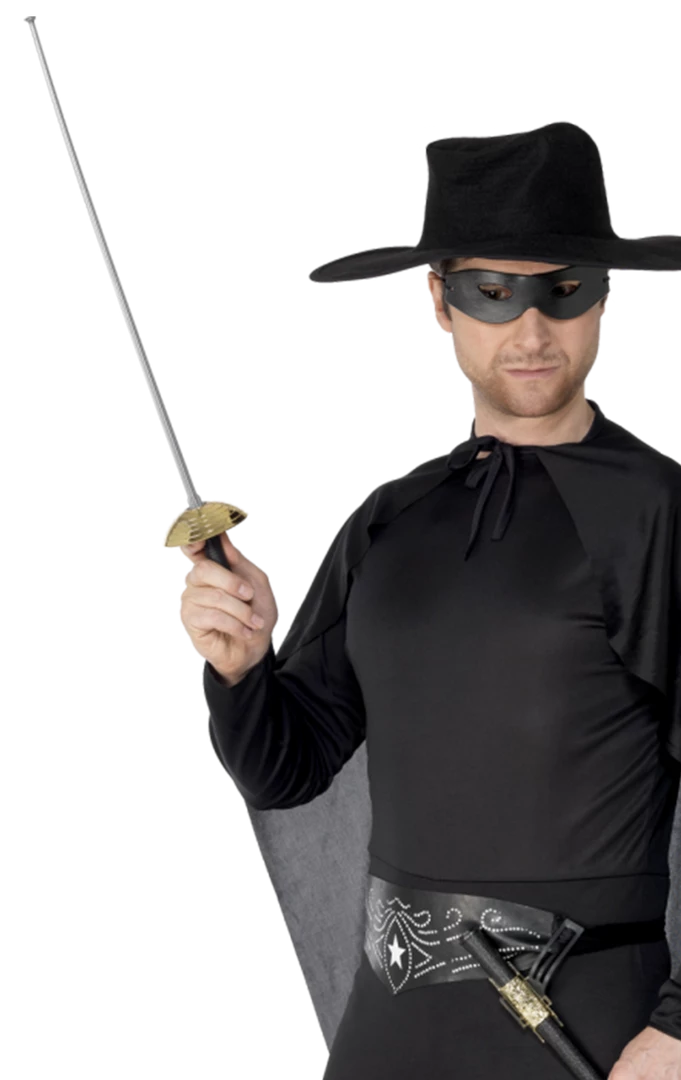 Dress up in darkest black and sign your work with this iconic Latin Bandit Sword and Eyemask! The easiest costume you will ever wear, everyone will instantly recognise you as soon as you walk in the room!